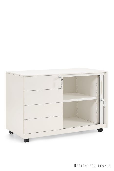 – Konstrukcja szafki, półki oraz kontenera wykonana z metalu lakierowanego proszkowo o grubości 0,6 mm (przed lakierowaniem)