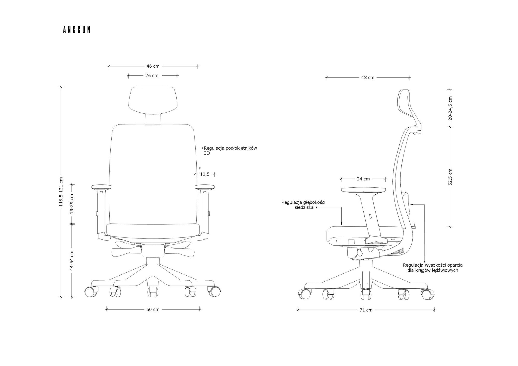 Fotel ergonomiczny ANGGUN doskonale dopasowuje się do budowy ciała korzystającej z niego osoby. Posiada zaawansowane mechanizmy, które umożliwiają regulację głębokości i wysokości siedziska i pełną regulację podłokietników. Użytkownik może skorzystać także z regulacji wysokości oparcia dla kręgów lędźwiowych oraz regulacji wysokości zagłówka. W ten sposób każdy punkt ciała jest doskonale podpierany przez konstrukcję fotela, a ryzyko pojawienia się bólu spowodowanego długim siedzeniem jest minimalizowane.