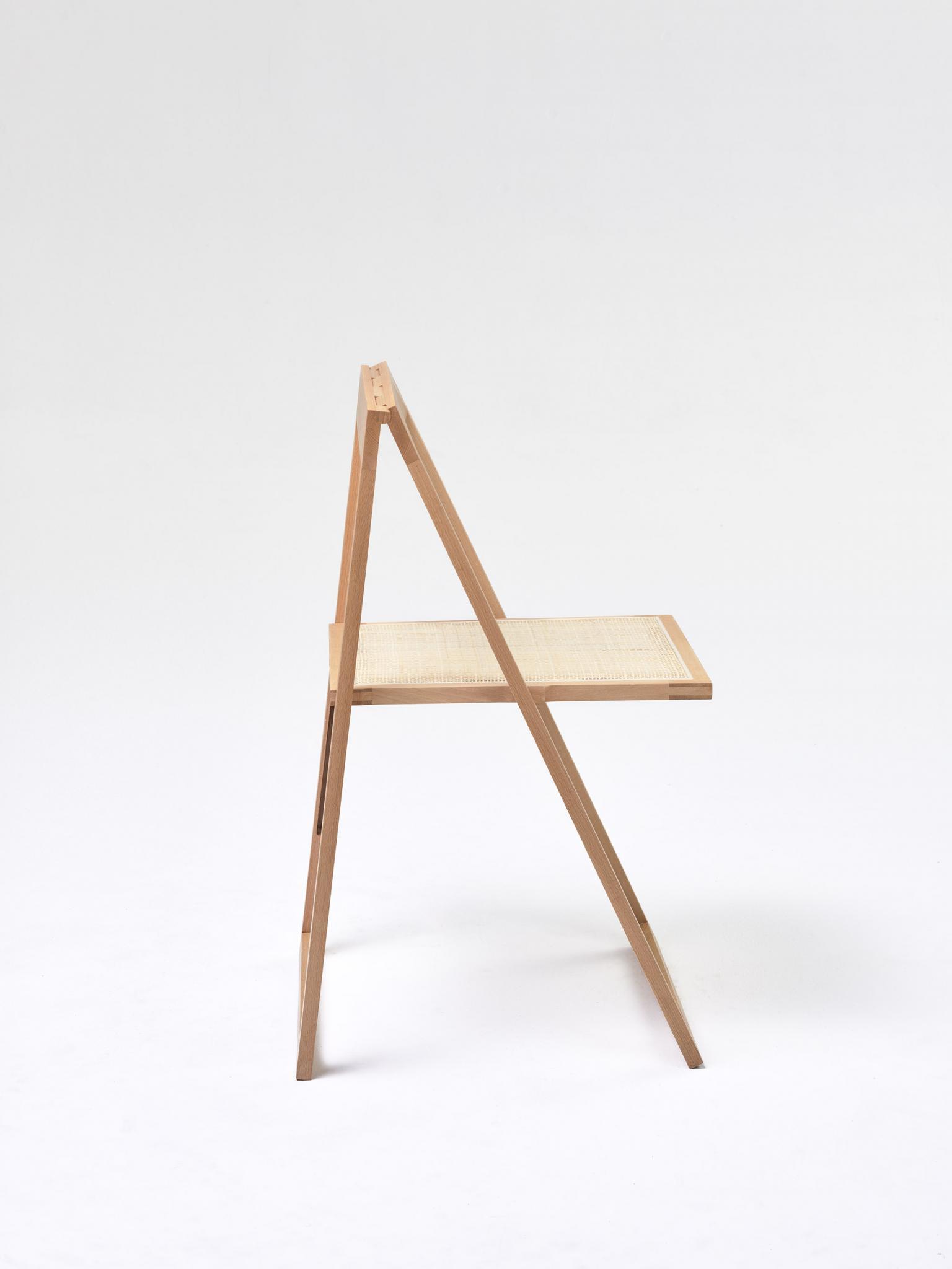 Krzesło AXIS to hołd dla lat 70. XX wieku, które wpłynęły na świat designu. Inspirowany klasycznymi modelami eksportowymi Paged, mebel ten wciela w sobie esencję tamtej epoki, łącząc ją z wygodą użytkowania. Zaprojektowany przez Grzegorza Gancarczyka, doświadczonego projektanta i konstruktora Paged, AXIS zachwyca swoją minimalistyczną, a jednocześnie estetyczną konstrukcją. To, co wyróżnia mebel, to zastosowanie autorskiego patentu drewnianego zawiasu, który nie tylko sprawia, że krzesło składa się płasko, ale także dodaje mu unikalnego charakteru. Dzięki wykorzystaniu lekkiego, plecionego siedziska, krzesło można błyskawicznie złożyć, tak by zajmowało minimalną przestrzeń.