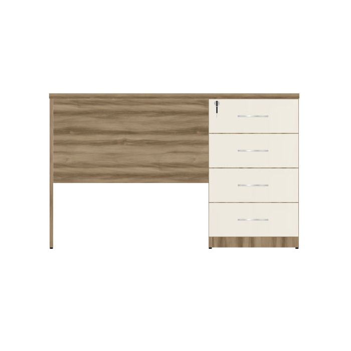 Podstawa biurka z płyty laminowanej o grubości 18 mm, krawędzie oklejone obrzeżem ABS 1 mm. Front szafki może być wykonany z płyty laminowanej lub z płyty akrylowej dostępnej w 9 wariantach kolorystycznych.