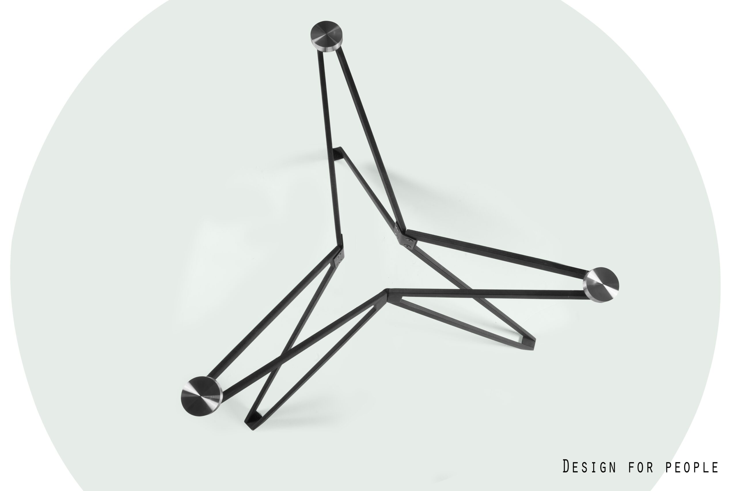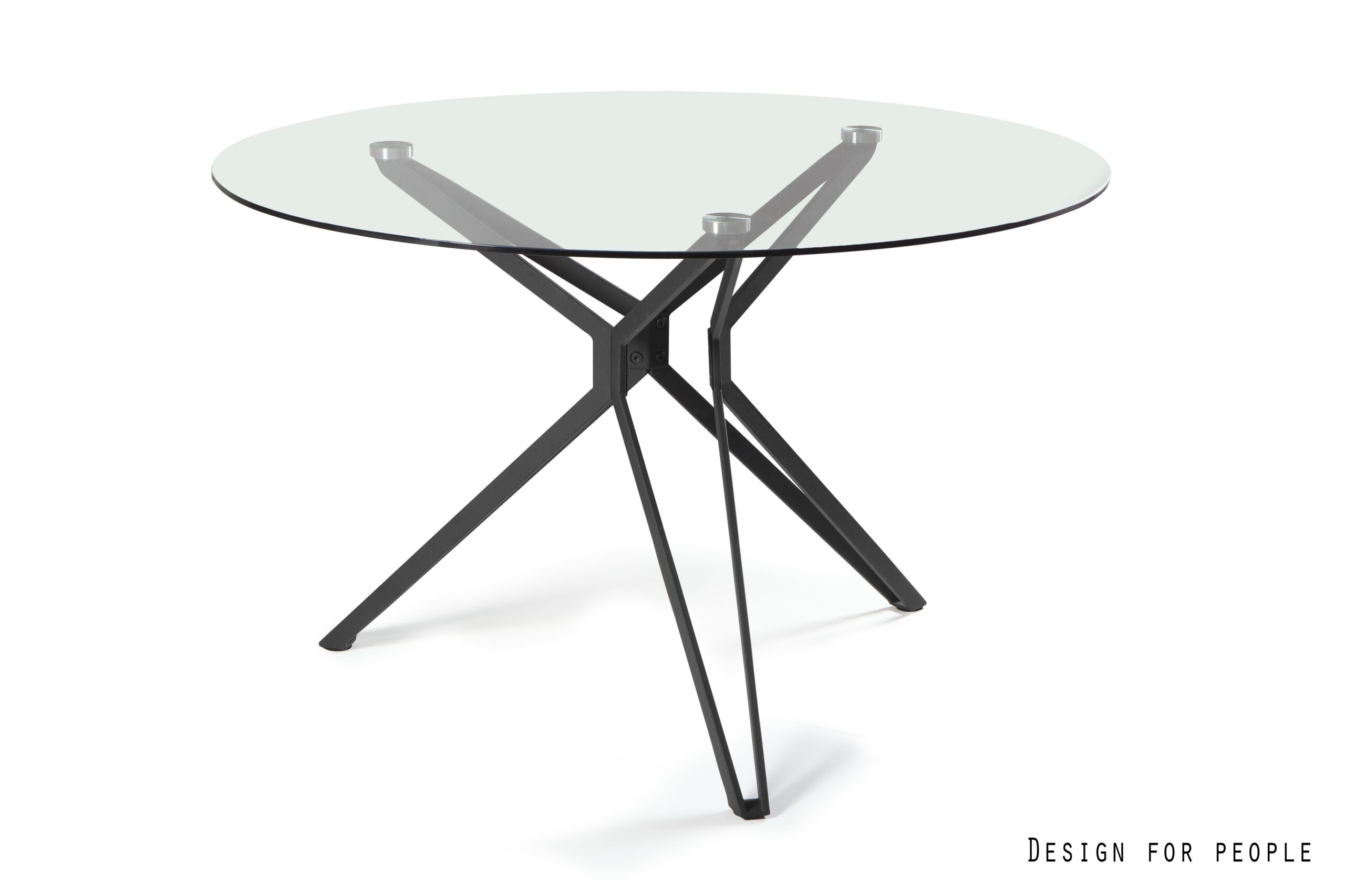 Symetryczna konstrukcja w kolorze czarnym wykonana została z metalu pokrytego lakierem proszkowym, dlatego cały stół wydaje się masywny i bardzo stabilny. Jednak nowoczesne połączenie metalu ze szklanym blatem sprawia, że stół dodaje wnętrzu lekkości.