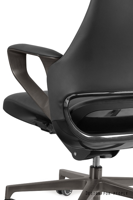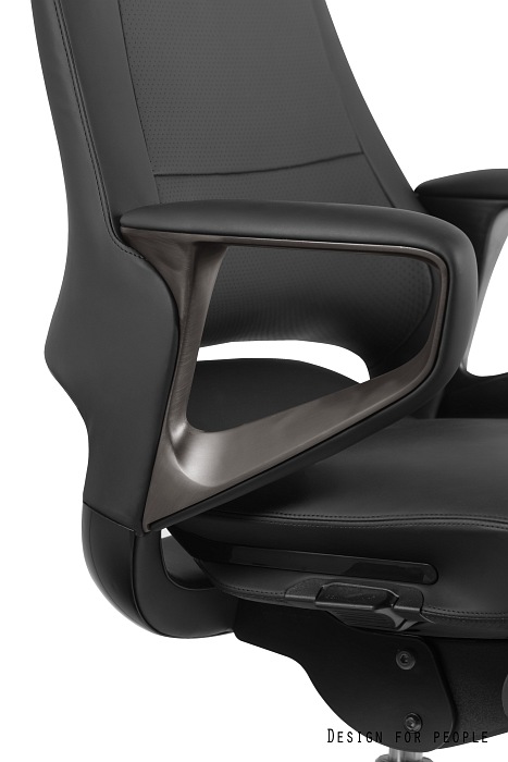 – Podłokietniki wykonane ze szczotkowanego aluminium posiadają miękkie nakładki z eko-skóry lub skóry naturalnej
